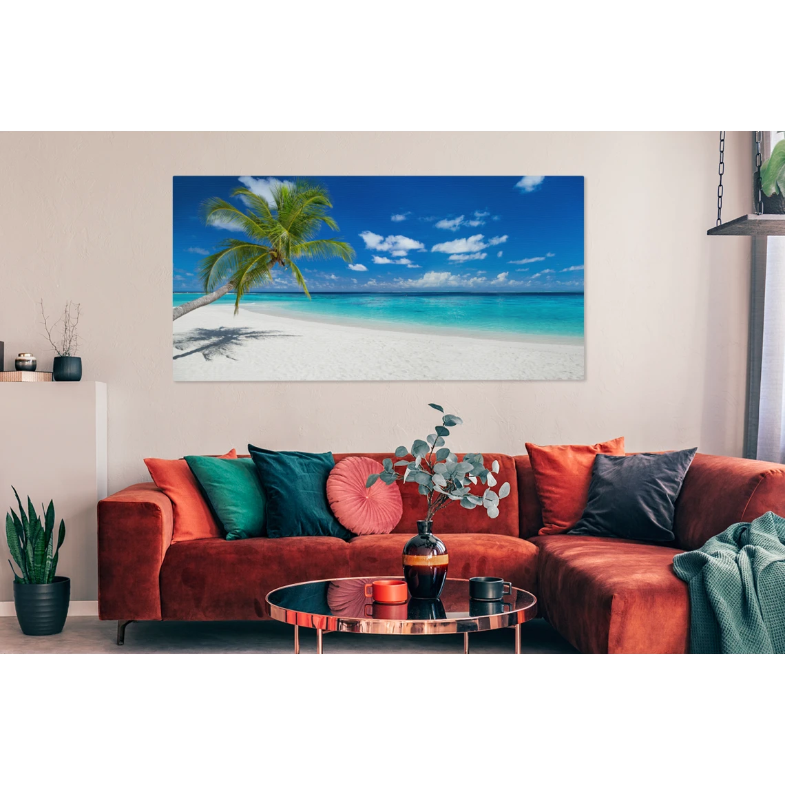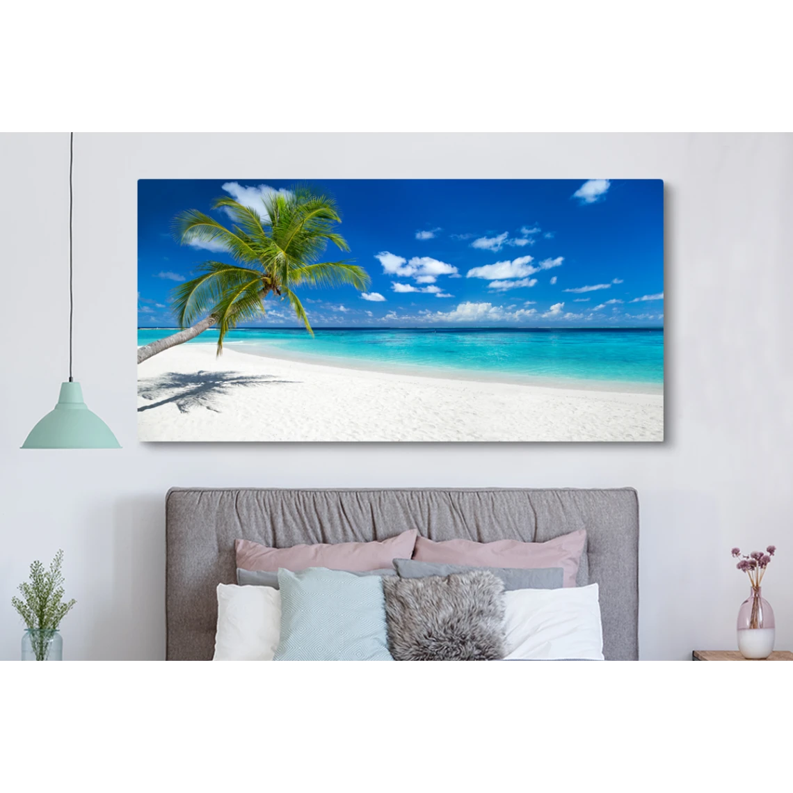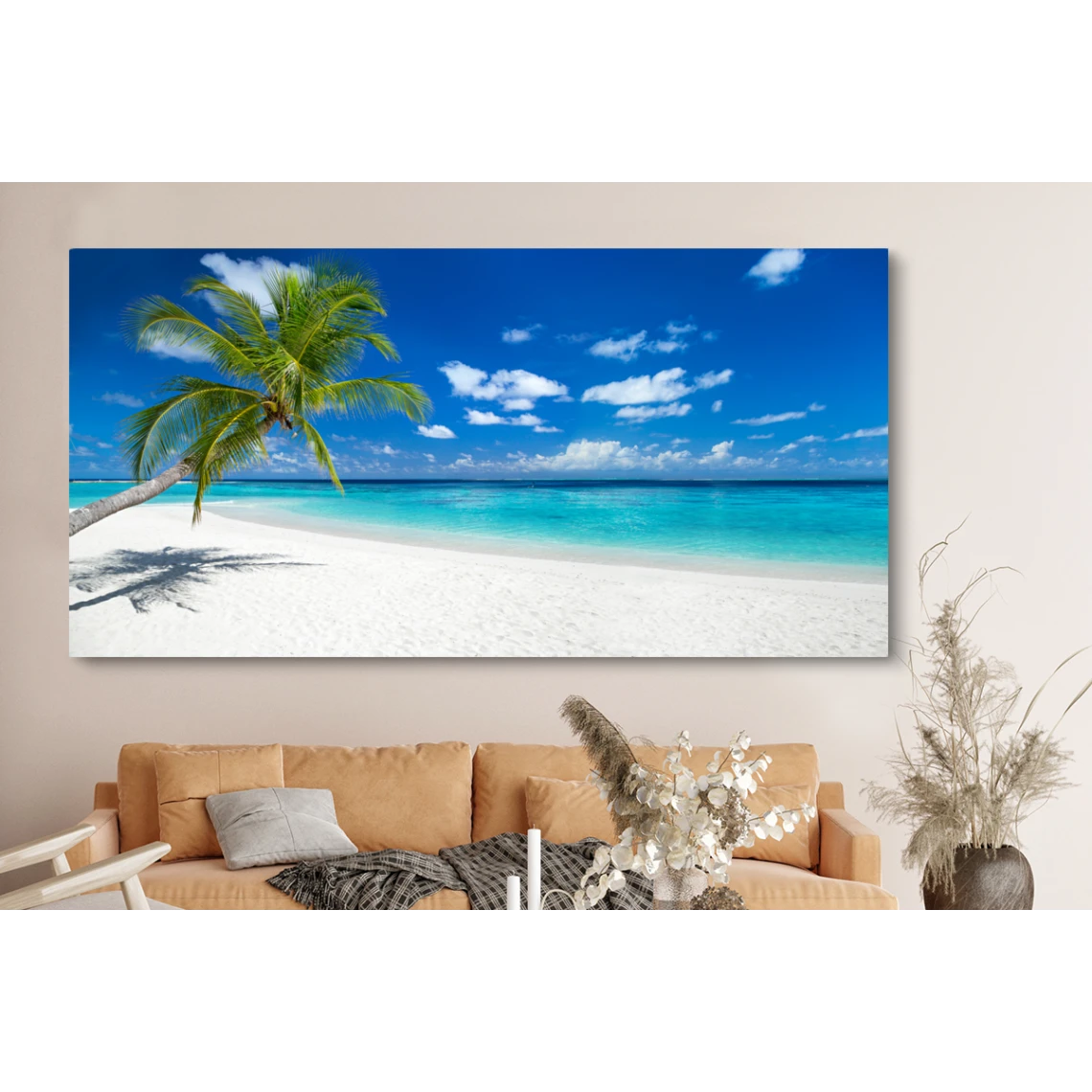 Points forts MuchoWow Tableau sur toile Plage – Mer – Palmier – Île Decoration murale 160×80 cm