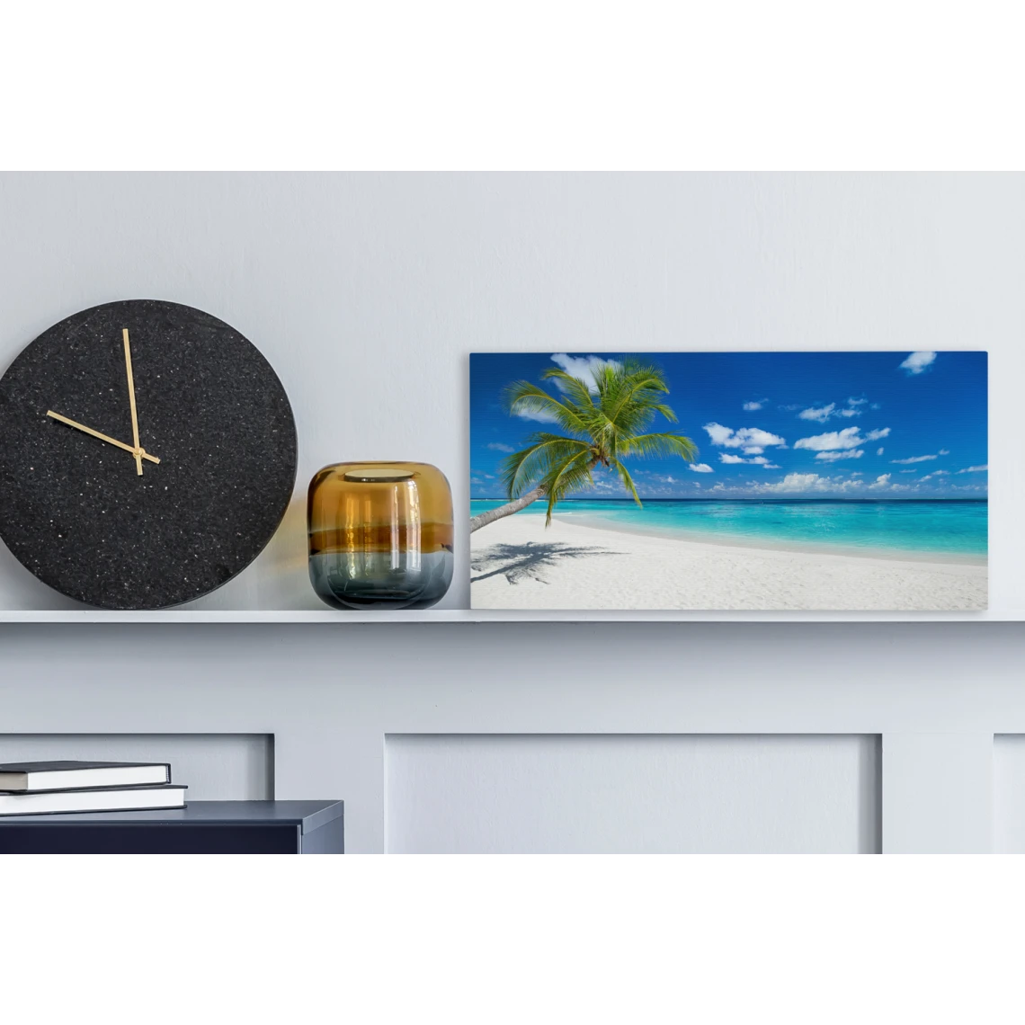 Points forts MuchoWow Tableau sur toile Plage – Mer – Palmier – Île Decoration murale 40×20 cm
