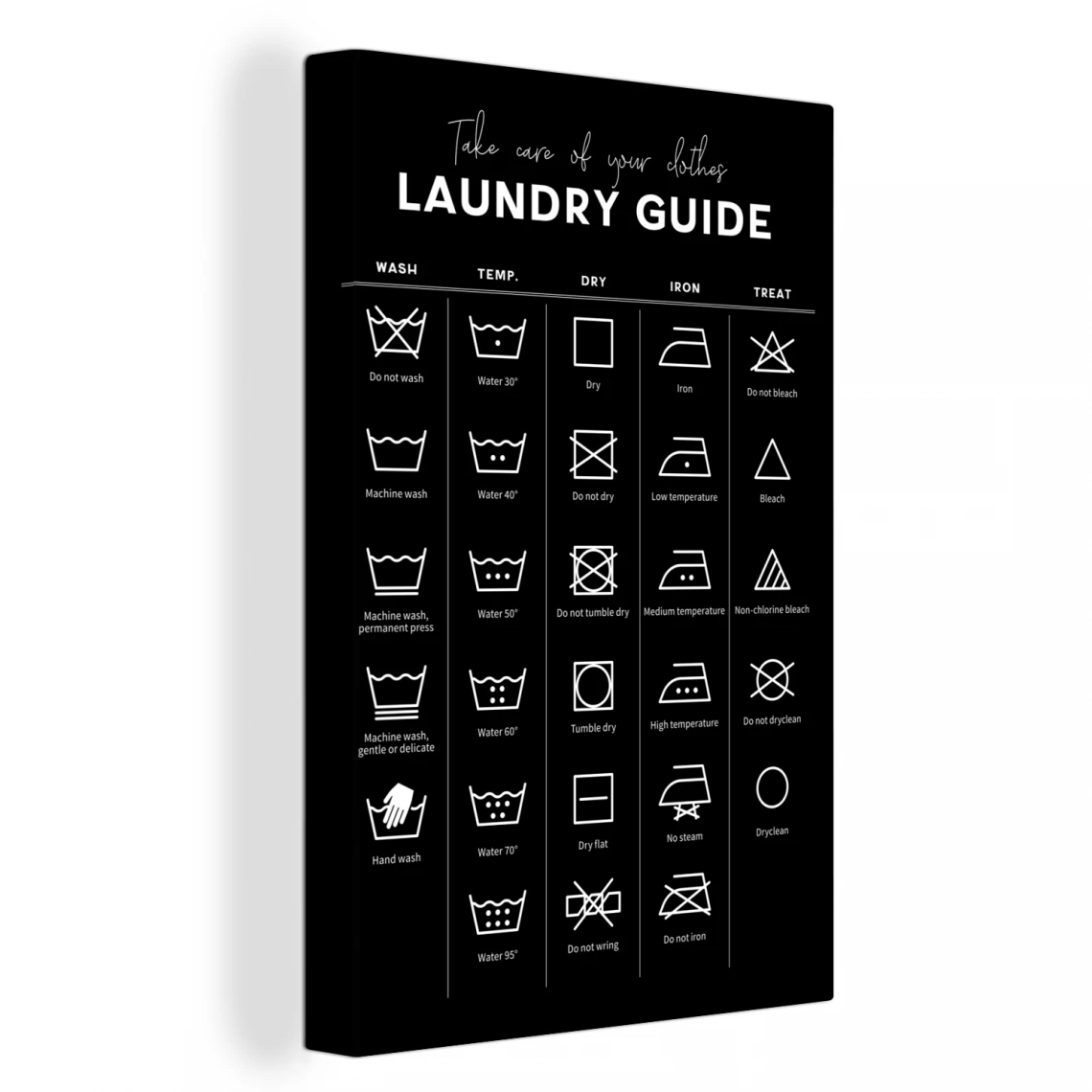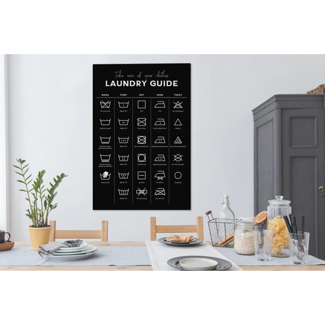 Points forts MuchoWow Tableau sur toile Symboles d’entretien des tissus – Instructions de lavage – Machine à laver Decoration murale 90×140 cm