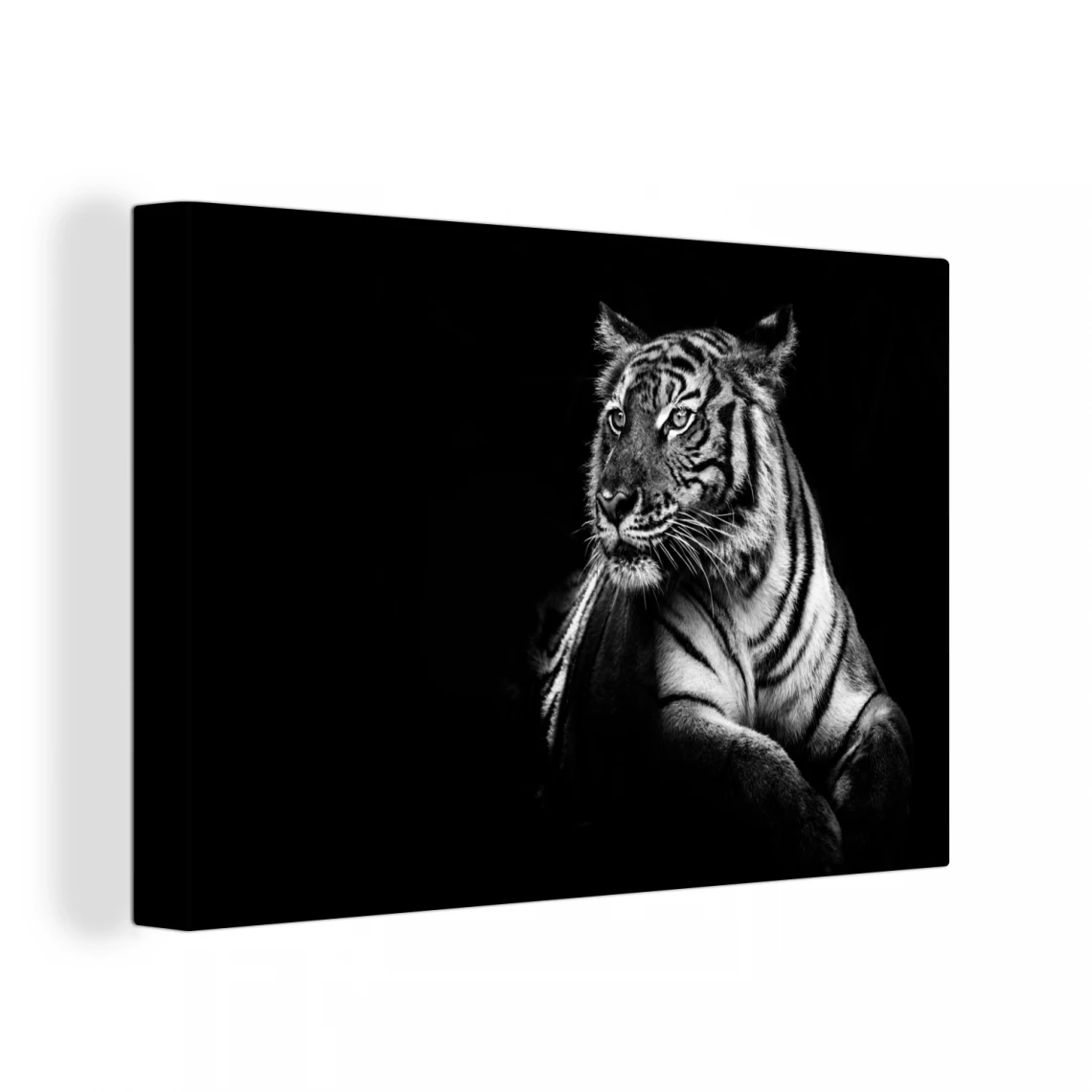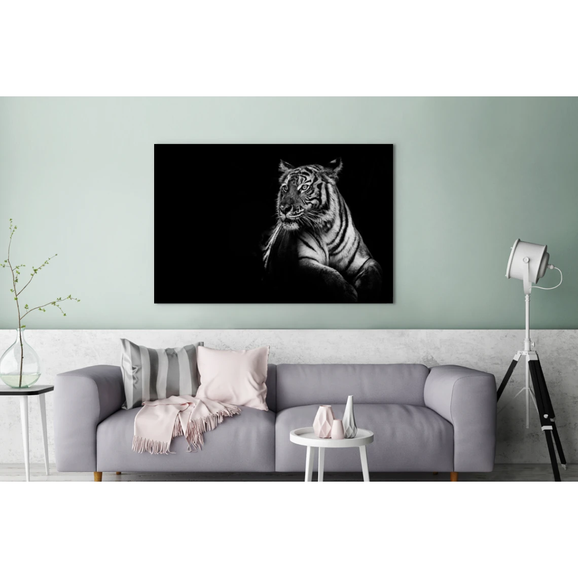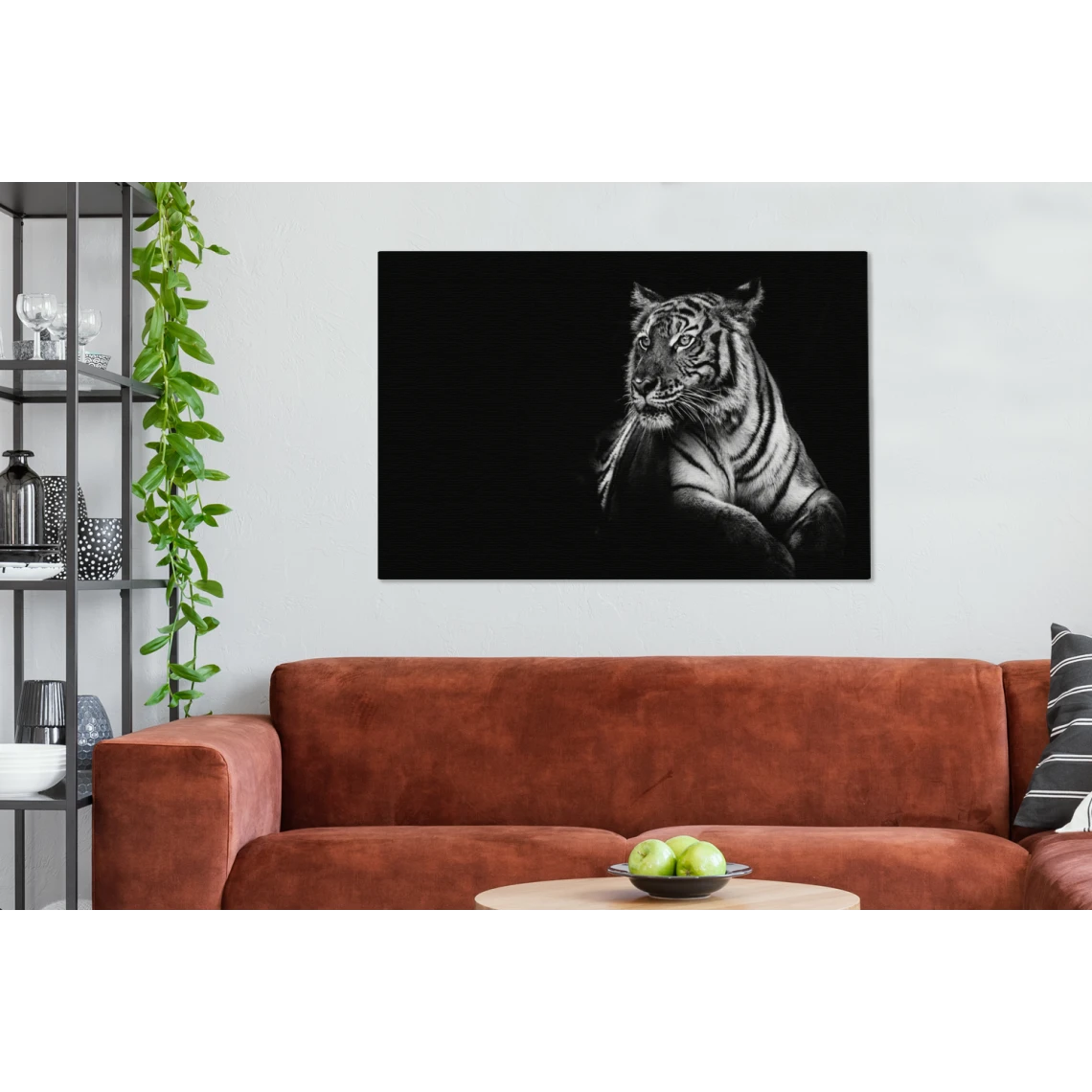 Points forts MuchoWow Tableau sur toile Tigre – Animaux – Noir – Blanc Decoration murale 140×90 cm