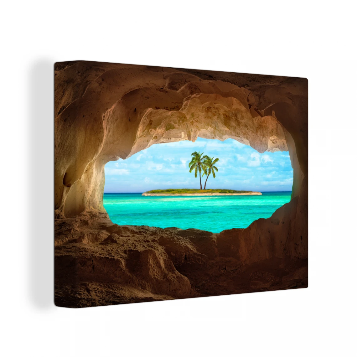 Points forts MuchoWow Tableau sur toile Tropical – Eau – Palmier Decoration murale 120×90 cm