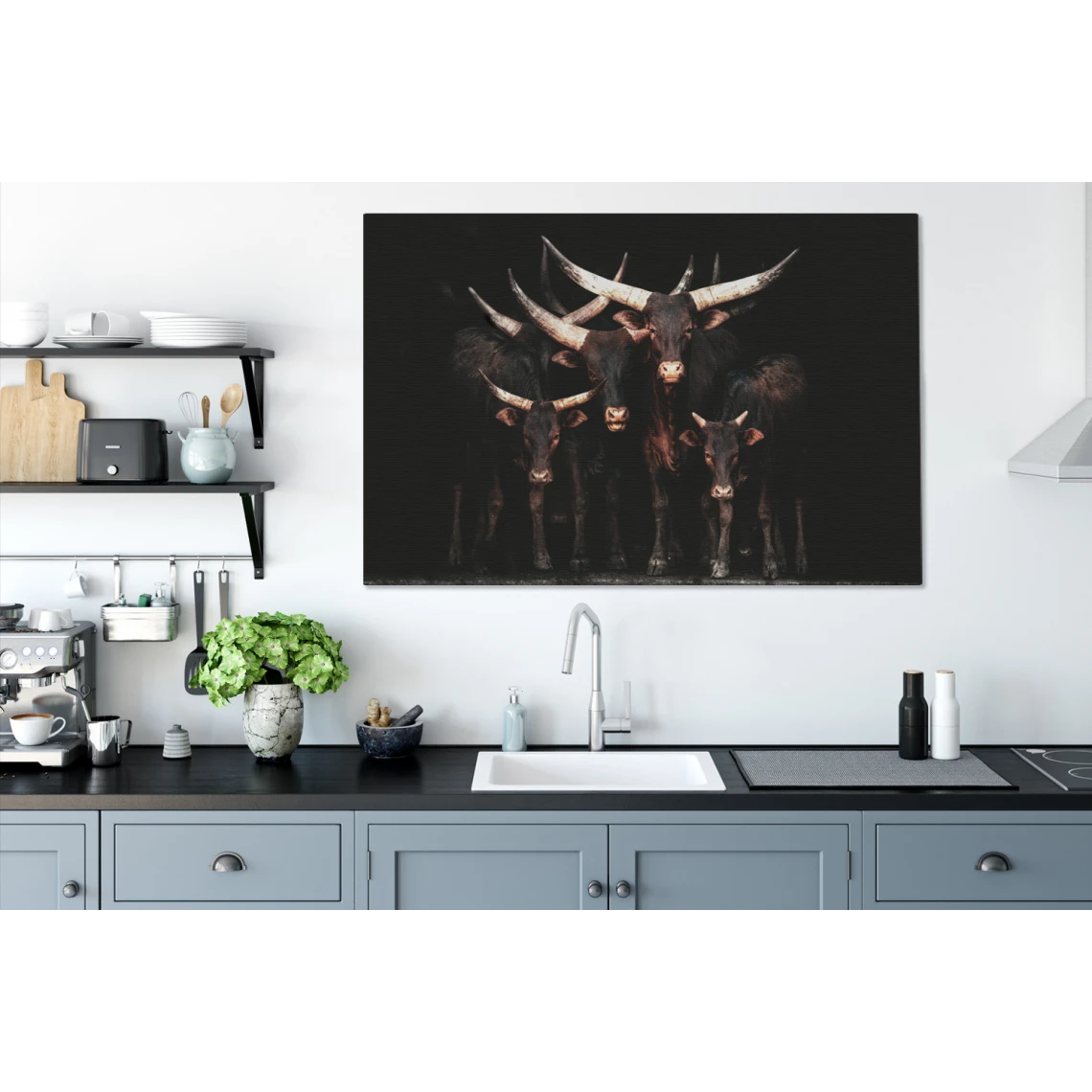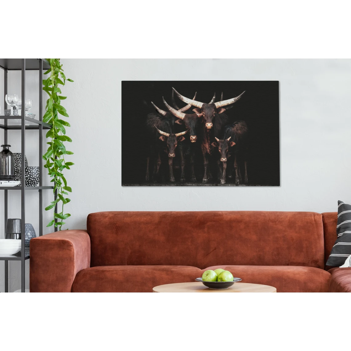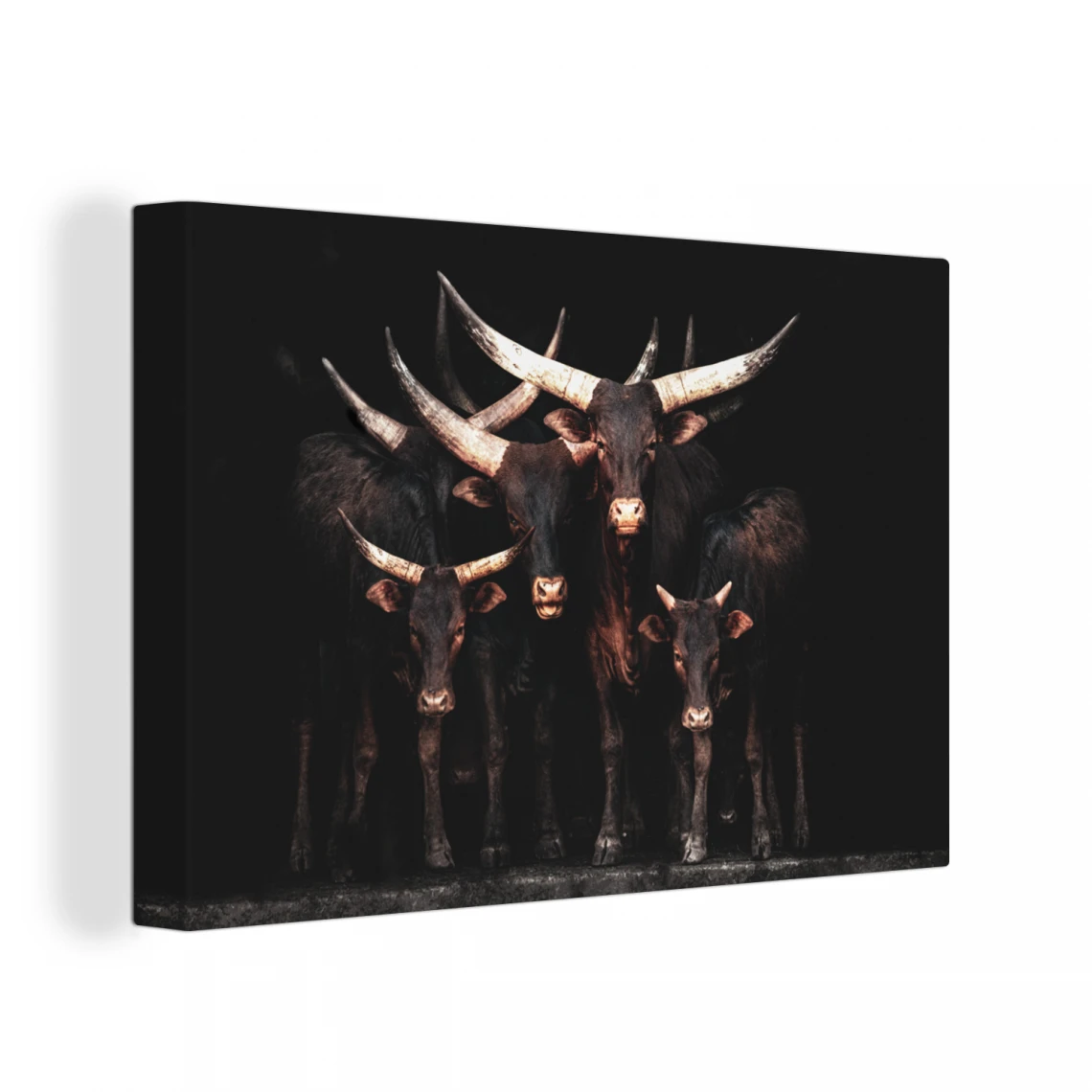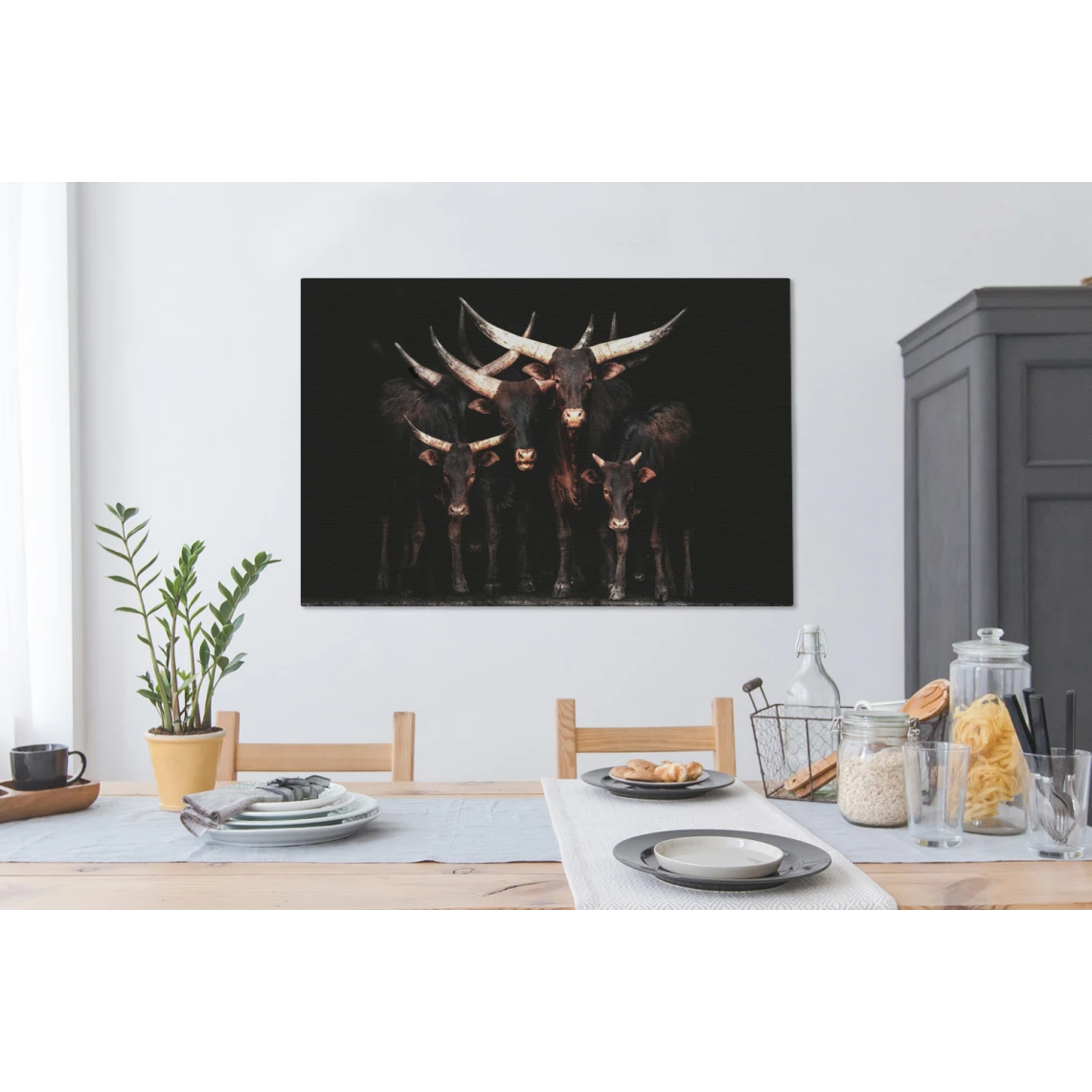 Points forts MuchoWow Tableau sur toile Vache – Watussi – Noir – Cornes Decoration murale 120×80 cm