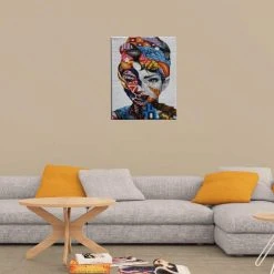 HOMEMANIA Tableau Murale – Portrait Femme Avec Des Touches De Couleur …