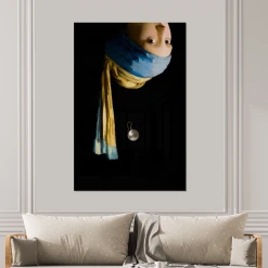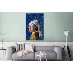 MuchoWow Impression Sur Verre Fille Avec Une Boucle D’oreille En Perle – Bleu D…