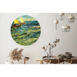MuchoWow Tableau Imprimé Rond Bateaux De Pêche En Mer – Vincent Van Gogh Impr…