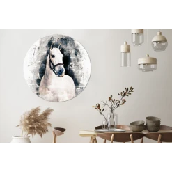MuchoWow Tableau Imprimé Rond Cheval – Bride – Papier Impression Sur Aluminium…