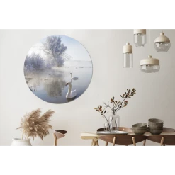MuchoWow Tableau Imprimé Rond Cygnes – Eau – Hiver Impression Sur Aluminium En…
