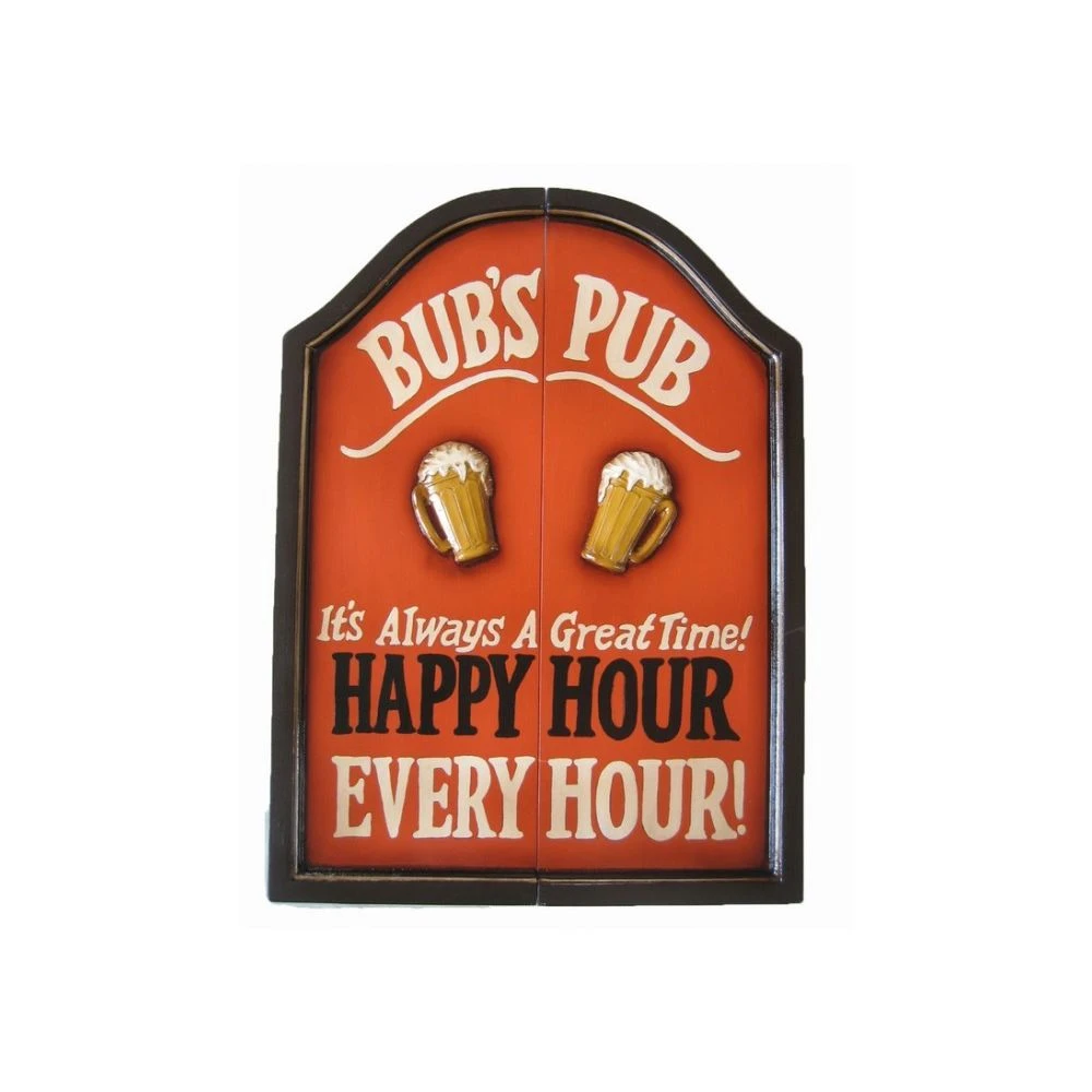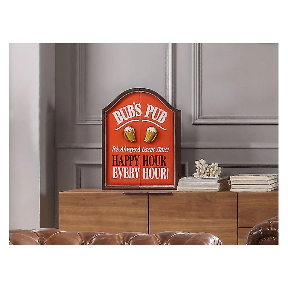 Imitez l’ambiance chaleureuse des pubs grâce à la plaque murale HAPPY HOUR . Il suffit de l’ouvrir pour y trouver un jeu de fléchettes ! Facile à accrocher, la plaque murale décorative est une bonne alternative au tableau: elle crée une ambiance et décore aisément votre intérieur. C’est un moyen rapide et facile pour donner du cachet à votre entrée, votre cuisine ou votre salon! Cette décoration rétro apportera style et originalité à vos murs tout en restant harmonieuse grâce à ses couleurs passe-partout !