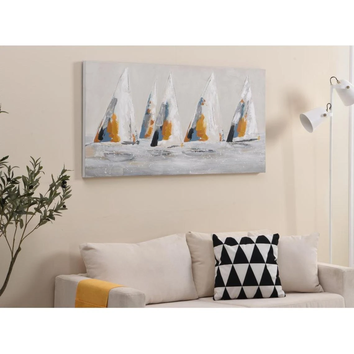 Optez pour les teintes discrètes de la toile VALMIERA. Peinte à la main avec de l’acrylique et soutenue par une structure en pin, elle sera solide dans le temps!